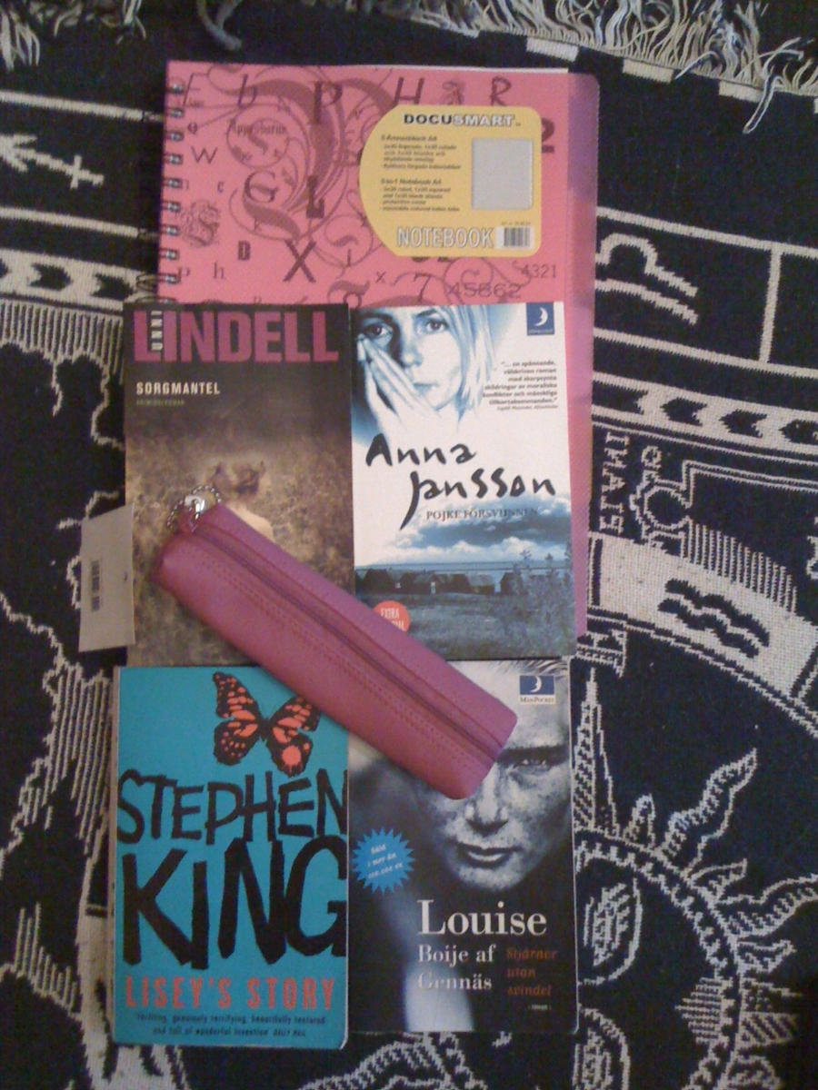 Jag har varit duktig idag. Mya och jag gick till Myrorna. Där kollade jag naturligtvis efter pocketböcker. Och jag köpte bara 4st. Jag hade en hög på 10 böcker från början, men jag sorterade bort mer än hälften. Visst var jag duktig?! Iallafall så fick jag med mig dessa böcker hem: