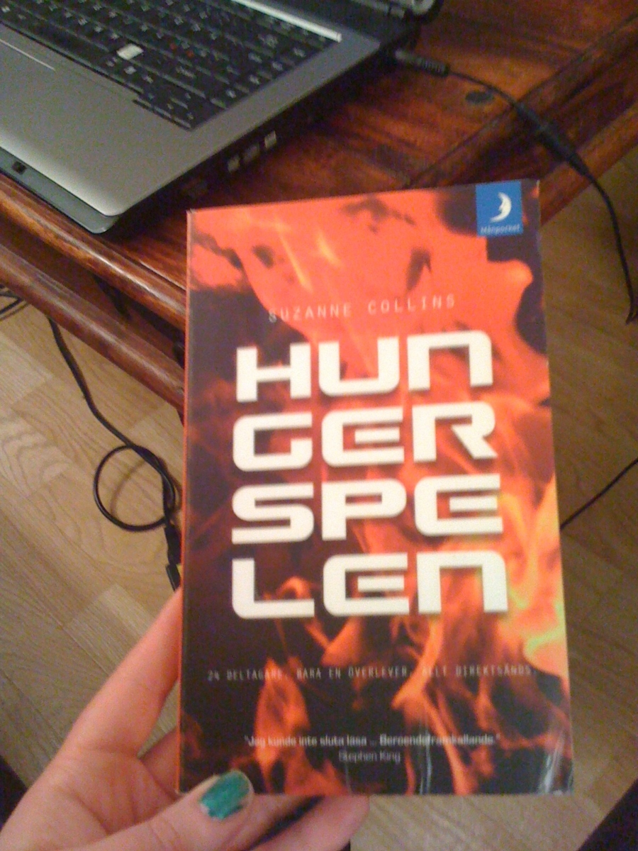 Det här året ropas Katniss lillasyster Prims namn upp. Men Katniss tar hennes plats, pojken som blir utvald från Distrikt 12 är bagarens son. Han som genom att ge Katniss bröd när de svalt räddade hennes familjs liv. Hur ska hon nu förhålla sig till honom? Och hur ska hon kunna charma eventuella sponsorer så att hon får hjälp under spelen? Berättelsen är otroligt spännande och romantisk. Jag vill bara fortsätta att läsa serien nu, men jag har inte andra delen Fatta eld..