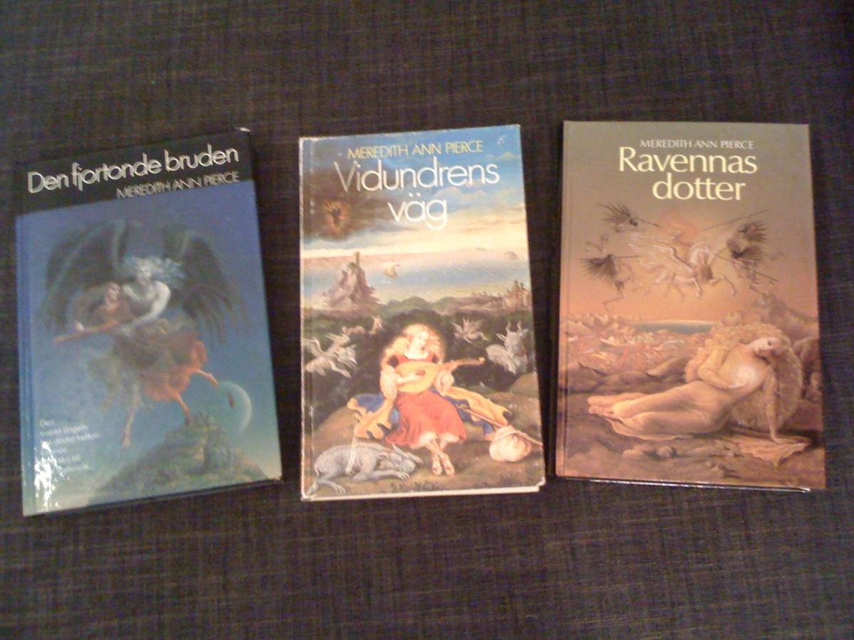 Denna serien hittade jag på en numera nedlagd loppisaffär i hemstaden. Jag tror faktiskt det var för 12-13 år sedan. Jag vet egentligen inte varför jag köpte den. Ja, jag gillade fantasy och ja jag hade relativt nyligen läst Sagan om Isfolket. Men serien blev stående oläst i min bokhylla ända tills jag skrev upp den på min Olästa böcker=köpstopps-lista.  Nu har jag äntligen börjat läsa den. Tänkte att jag ska berätta om hela serien på en gång:
