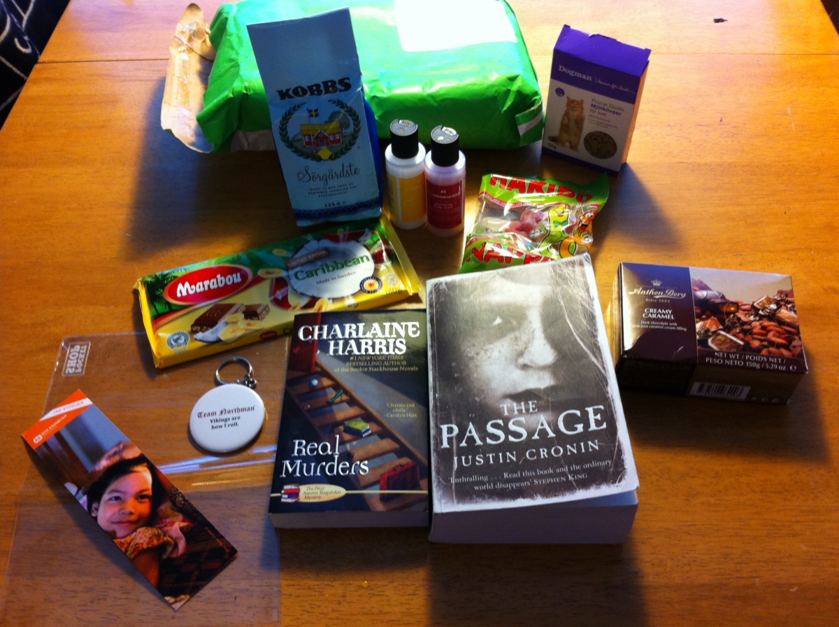 Världens finaste paket med världens bästa innehåll! Min hemliga bokvän har gett mig det perfekta paketet. I love it! Jag menar The Passage och Real murders- första delen i Aurora Teagardenserien! Bara det är ju helt fantastiskt. Vill läsa nu!