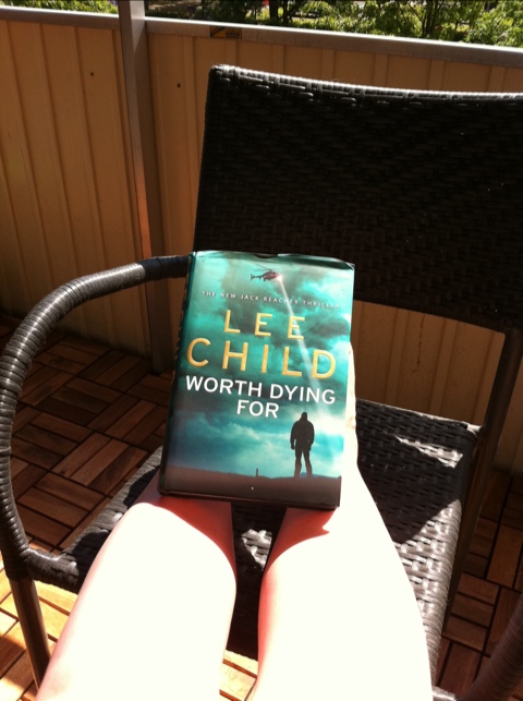 Lussekatten tyckte att vi skulle stanna kvar i sängen, så det gjorde vi. Jag läste Fallen ängel och han sov och såg utsom en liten ängel. Sen har vi suttit på balkongen och jag har läst Worth Dying For. Lusse var mest på jakt efter fåglar.