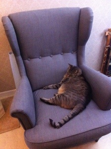 1. Fin fåtölj och fin katt!