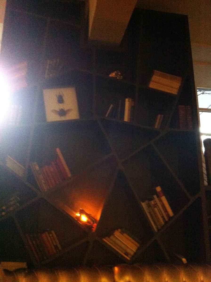Både för och efter middagen satt vi i hotellbaren. De hade så fina bokhyllor där.