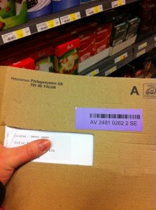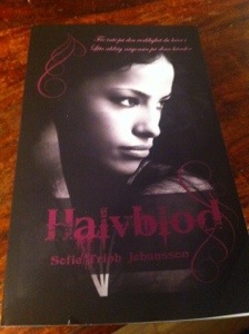 Vad kan det vara i det här paketet då? Jo en liten in bok kanske! Förlaget Mörkersdottir hade eller har en insamling till cancerfonden där man fick en bok om man gav 50kr. Eftersom jag ändå hade tänkt ge lite pengar till cancerfonden så passade jag på. Jag valde boken Halvblod. Jag har försökt mig på att läsa den förut, men jag fastnade inte för den och det var dags att lämna tillbaka den till biblioteket. Gå in här och läs om insamlingen.