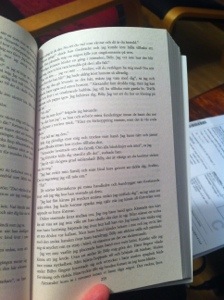 Men texten i boken är sjukt liten. Jag vet inte om jag kommer kunna läsa den.  Jag kanske får investera i ett förstoringsglas.. Eller läsa utan glasögon. Jag är ju närsynt så det hjälper lite, men jag har inte läst utan glasögon på flera år ( läs 15 år) så det lär inte bli så mycket lättare. Kolla själv vad liten stilen är!