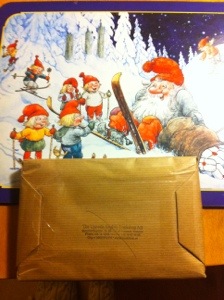 När jag kom hem från jobbet så låg detta paketet på köksbordet och väntade på mig. Om man har riktigt bra syn så ser man att det komer ifrån The English Bookshop. Min nya Book of the Monthbok!