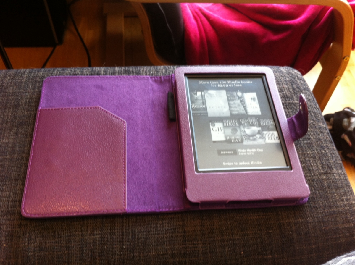 Jag måste alltså köpa en ny. Vi kollade på Amazon, men de var så dyra. Tillslut hittade vi en Kindle 7 på cyberphoto för 699kr! Så Kindlen beställdes och ett snyggt skyddsfoderal för 75kr på eBay. Sedan var det bara att vänta. Den kom riktigt fort och det var bara att registrera den nya Kindlen och föra över böckerna till den. Dock borde vi ha tagit bor den gamla Kindlen innan vi lade till den nya. Något som vi upptäckte igår när jag skulle köpa några böcker från Amazon och de inte kom fram till nyKindlen, men efter sambon fipplade runt lite funkade det.