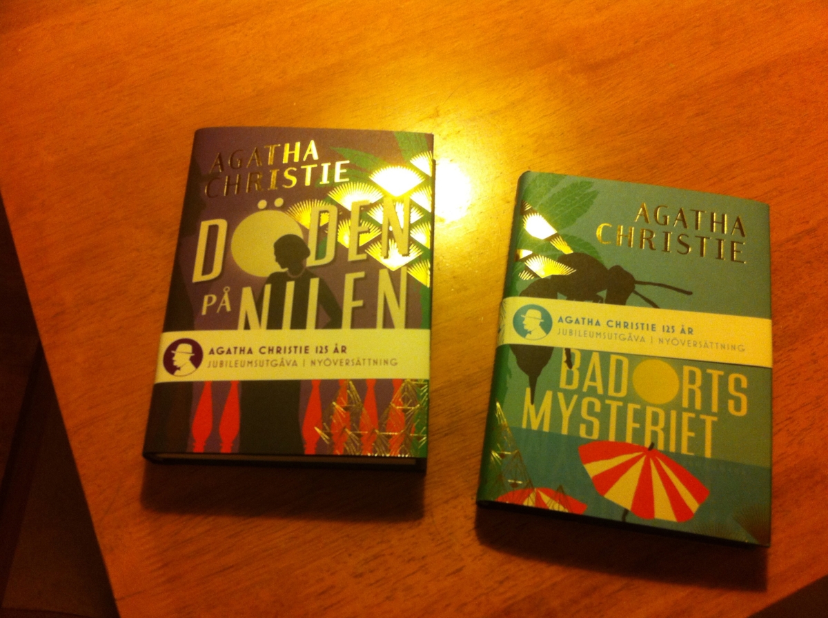 Igår hämtade jag ett paket på Coop. I de fanns två Agatha Christieböcker: Döden på Nilen och Badortsmysteriet. De är nyöversättningar eftersom Agatha Christie skulle ha fyllt 125 år i år. Bookmarkförlag har gett ut fyra andra Christieböcker och i september släpps ytterligare tre eller var det fyra?