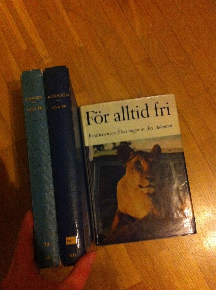 Leva fri av Joy Adamson. Tredje boken om lejonet Elsa som paret Adamson försökte återanpassa till ett liv i frihet. I den sista delen dör Elsa och det handlar istället om hennes tre ungar. Älskade filmen Born Free och alla tre böckerna.