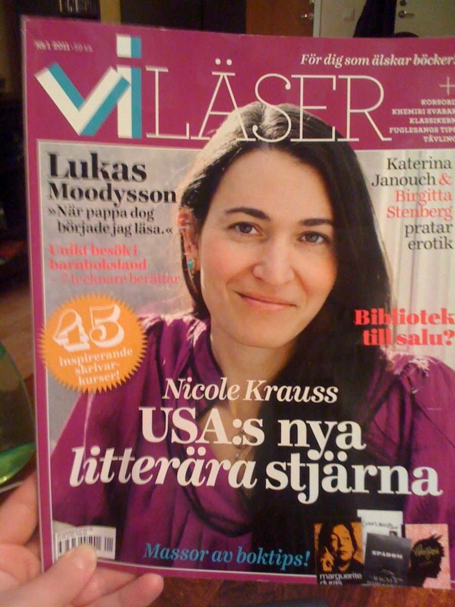 Favoritartiklar: Den om Nicole Krauss och Du sköna nya mötesplats. Den sista är en mycket intressant artikel om bibliotekens roll. Med reportage från bl.a. Nacka Forums bibliotek där antalet utlån per år bestämmer hur mycket pengar de får. Eller så här är det. Om de inte uppnår målet på 155 000 utlånade så får de böta.
